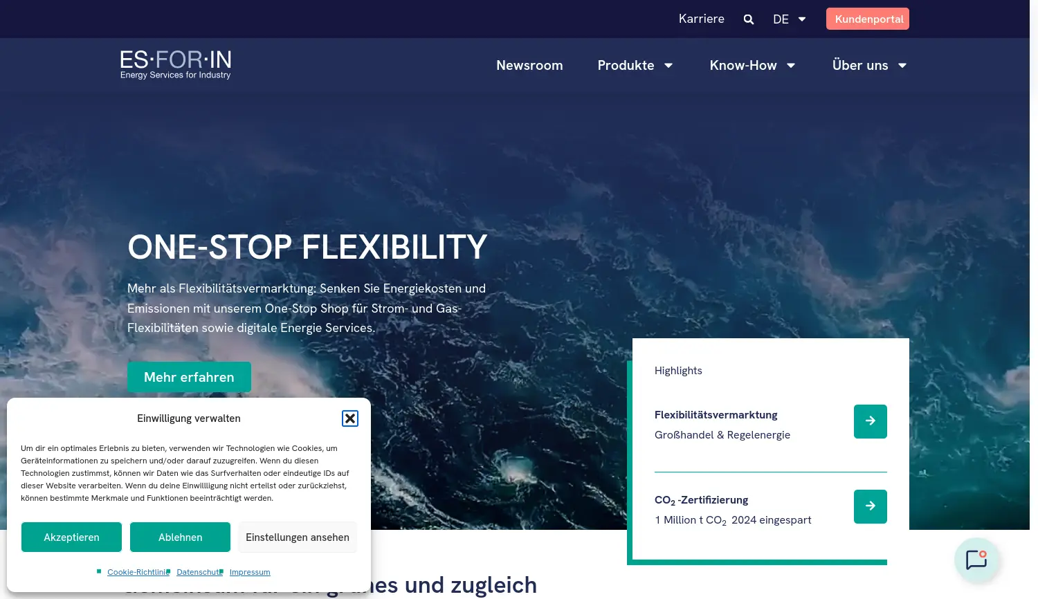 ONE-STOP FLEXIBILITY – Mehr als Flexibilitätsvermarktung. ESFORIN ist ein führender digitaler Energiedienstleister, der mit automatisierten Algorithmen die kurzfristige Flexibilität von Strom- und Gasanlagen vermarktet.