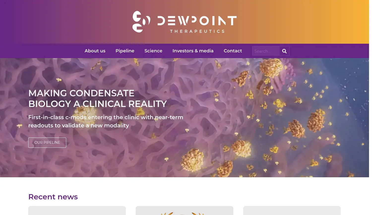 Kondensat-Biologie zur klinischen Realität machen Dewpoint Therapeutics entwickelt neuartige Therapien, sogenannte Kondensat-Modulatoren, basierend auf der Biologie biomolekularer Kondensate, um komplexe Krankheiten zu behandeln.