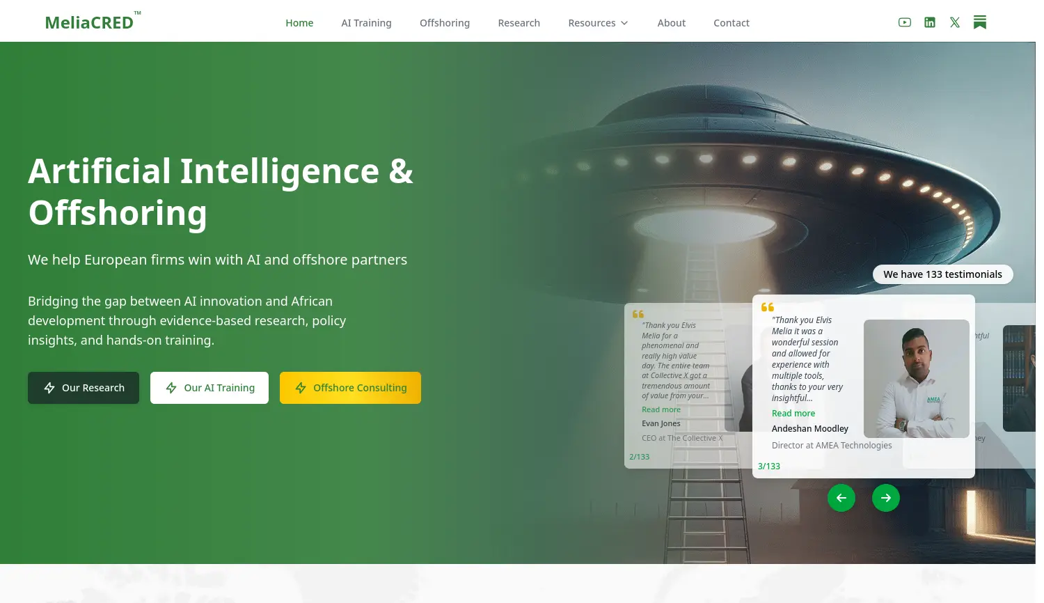 Überbrückt KI-Innovationen für europäische Unternehmen und die Entwicklung in Afrika durch Forschung und Beratung. MeliaCRED unterstützt europäische Firmen dabei, Künstliche Intelligenz zu implementieren und strategische Offshoring-Partnerschaften in Afrika aufzubauen, gestützt auf Forschung und Schulung.