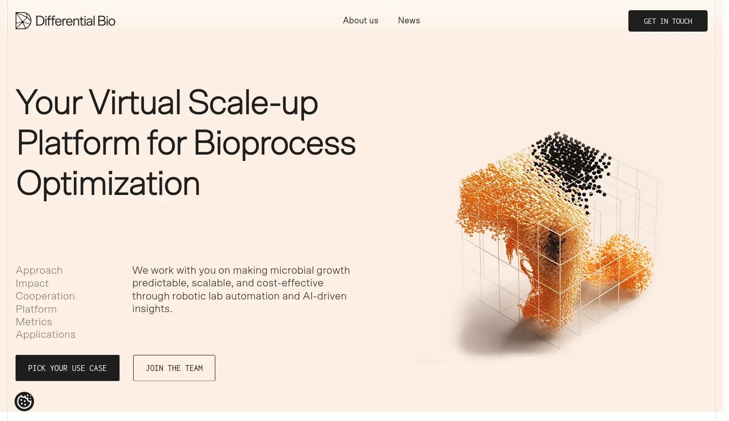 Ihre virtuelle Scale-up-Plattform für die Bioprozess-Optimierung. Differential Bio bietet eine virtuelle Scale-up-Plattform, die Laborautomation und KI nutzt, um mikrobielles Wachstum vorhersagbar, skalierbar und kosteneffizient zu machen.