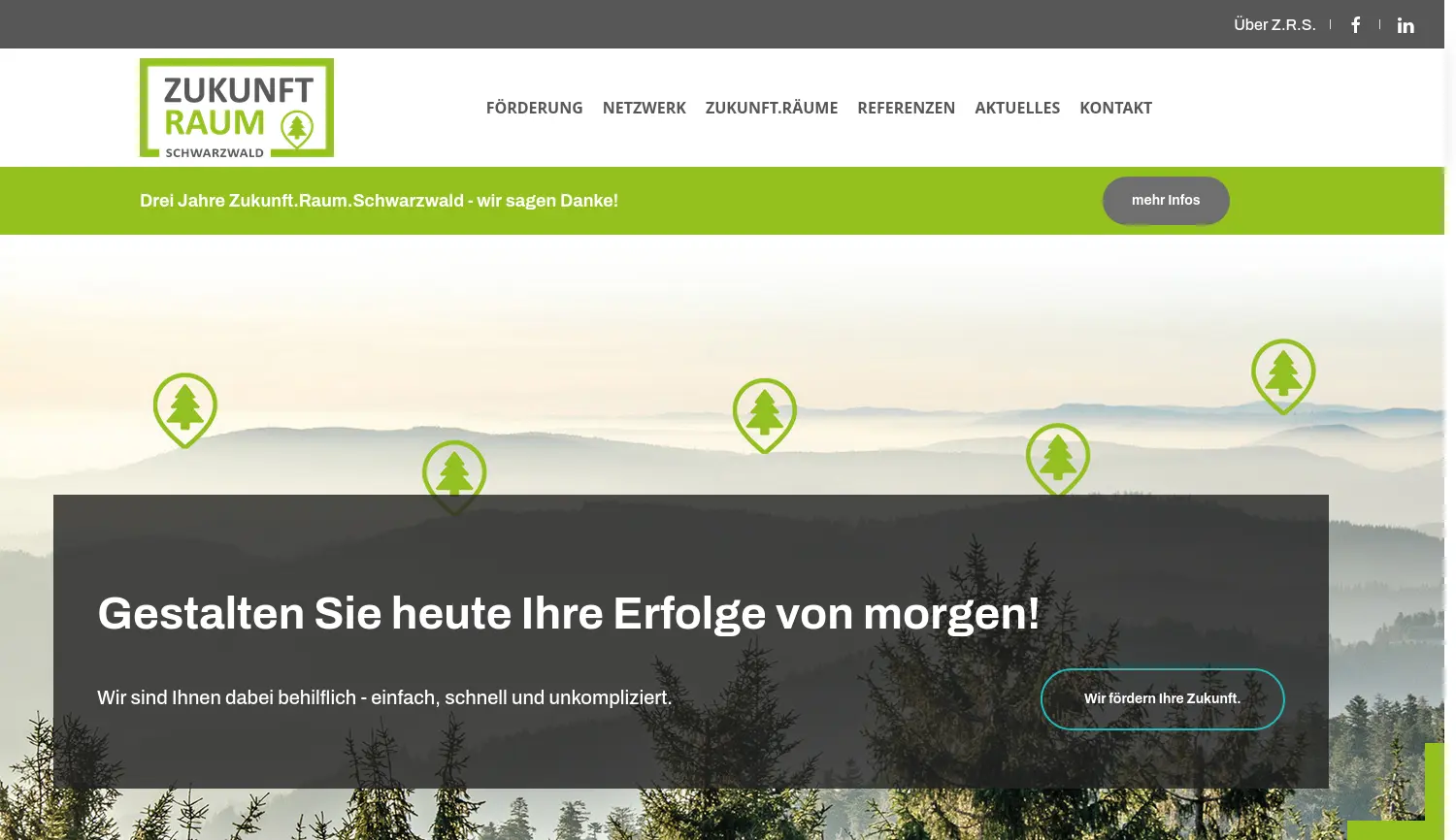 Ihre Zukunft, unser Fokus! Digital, nachhaltig, innovativ und vernetzt. Zukunft.Raum.Schwarzwald ist ein regionales Innovationsnetzwerk, das KMU im Südschwarzwald durch geförderte Beratung, Wissenstransfer und Coworking-Spaces bei Digitalisierung und Nachhaltigkeit unterstützt.