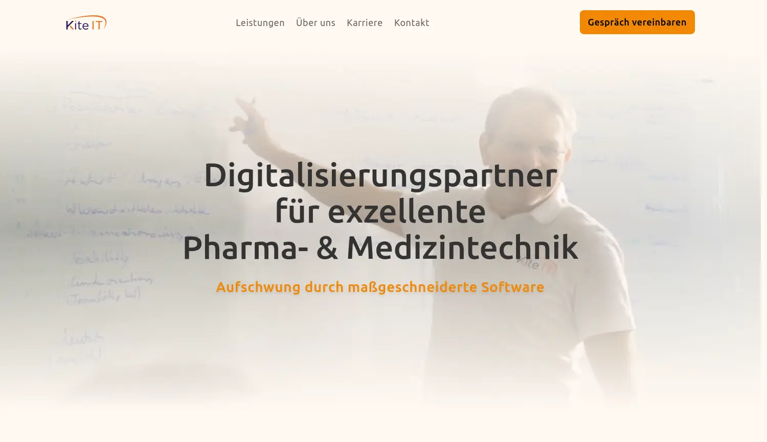 Digitalisierungspartner für exzellente Pharma- & Medizintechnik Kite IT ist eine Softwareagentur und Digitalisierungspartner, der maßgeschneiderte Softwarelösungen und IT-Dienstleistungen für die Pharma- und Medizintechnikbranche anbietet.