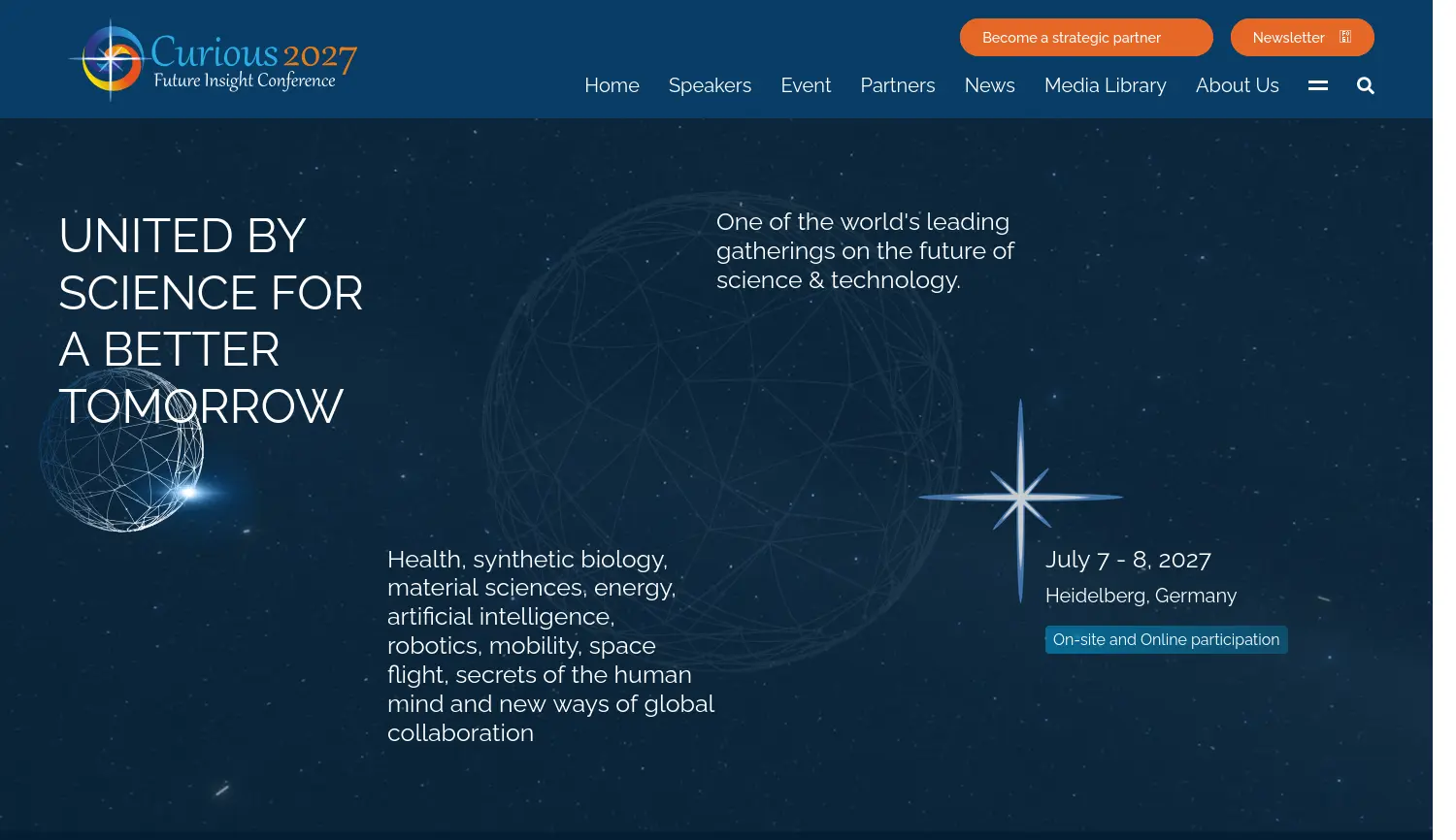 Vereint durch die Wissenschaft für eine bessere Zukunft. Curious – Future Insight ist eine der weltweit führenden Konferenzen, die brillante Wissenschaftler und innovative Köpfe zusammenbringt, um die Zukunft der Wissenschaft und Technologie zu gestalten und globale Herausforderungen zu lösen.