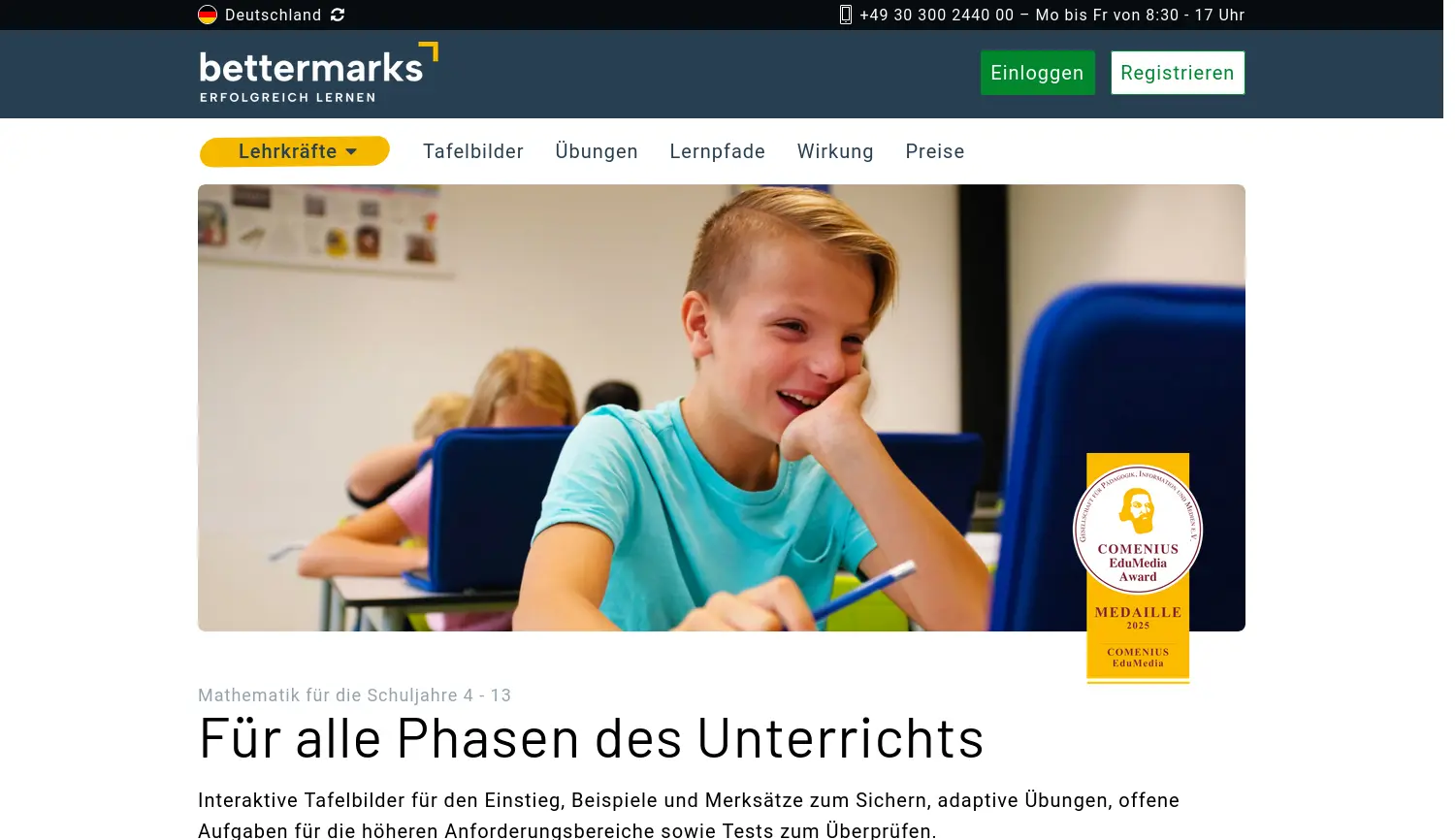Das adaptive Lernsystem für Schulen: Weniger Aufwand, mehr Überblick im Mathe-Unterricht. bettermarks ist eine KI-gestützte adaptive Lern- und Lehrplattform, die Lehrkräfte im Mathematikunterricht für die Klassen 4 bis 13 unterstützt.