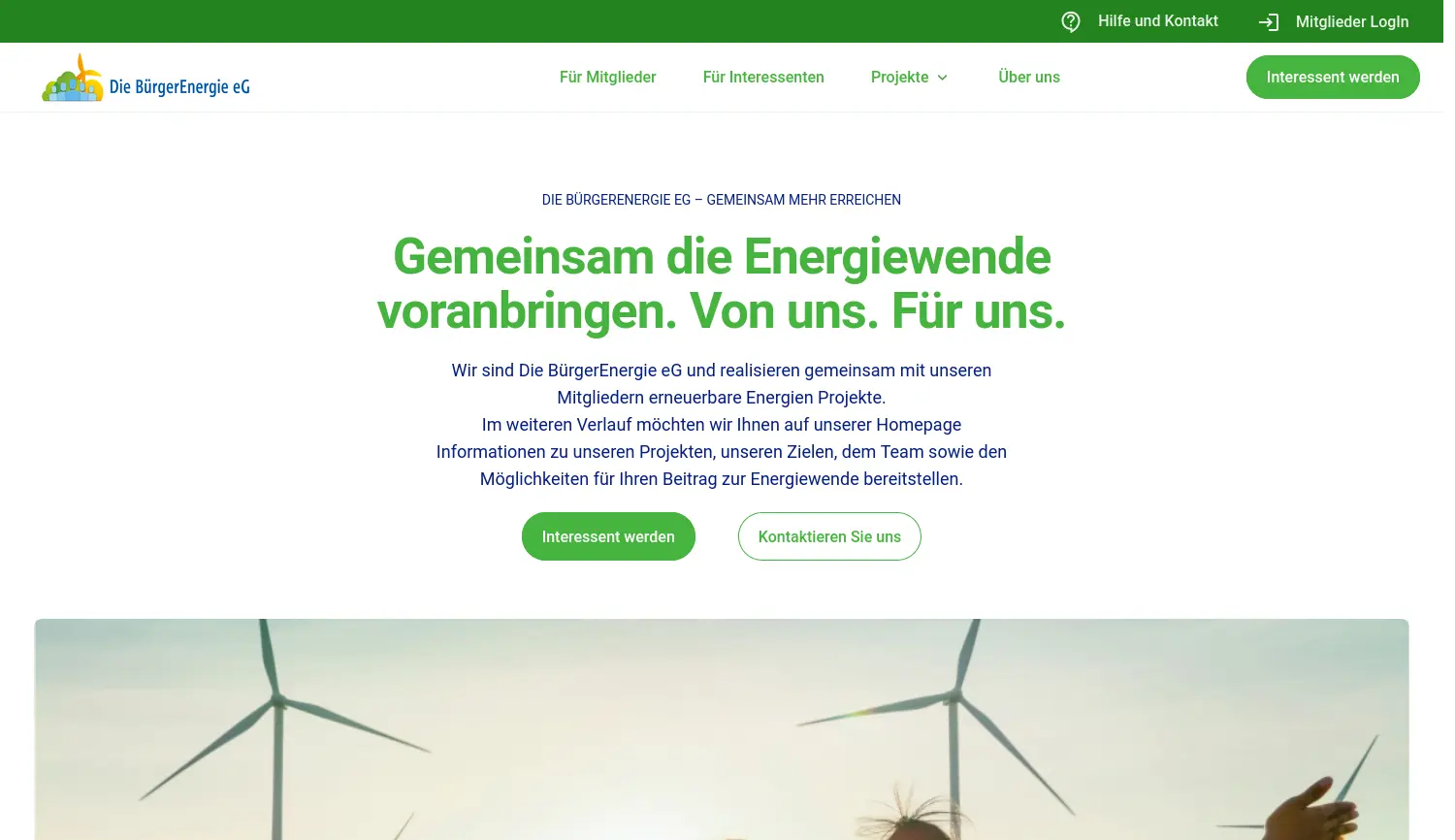 Gemeinsam die Energiewende gestalten – regional, rentabel und nachhaltig. Die BürgerEnergie eG ist eine Genossenschaft, die Bürger zur gemeinschaftlichen Realisierung und Finanzierung regionaler Projekte im Bereich erneuerbarer Energien zusammenbringt.