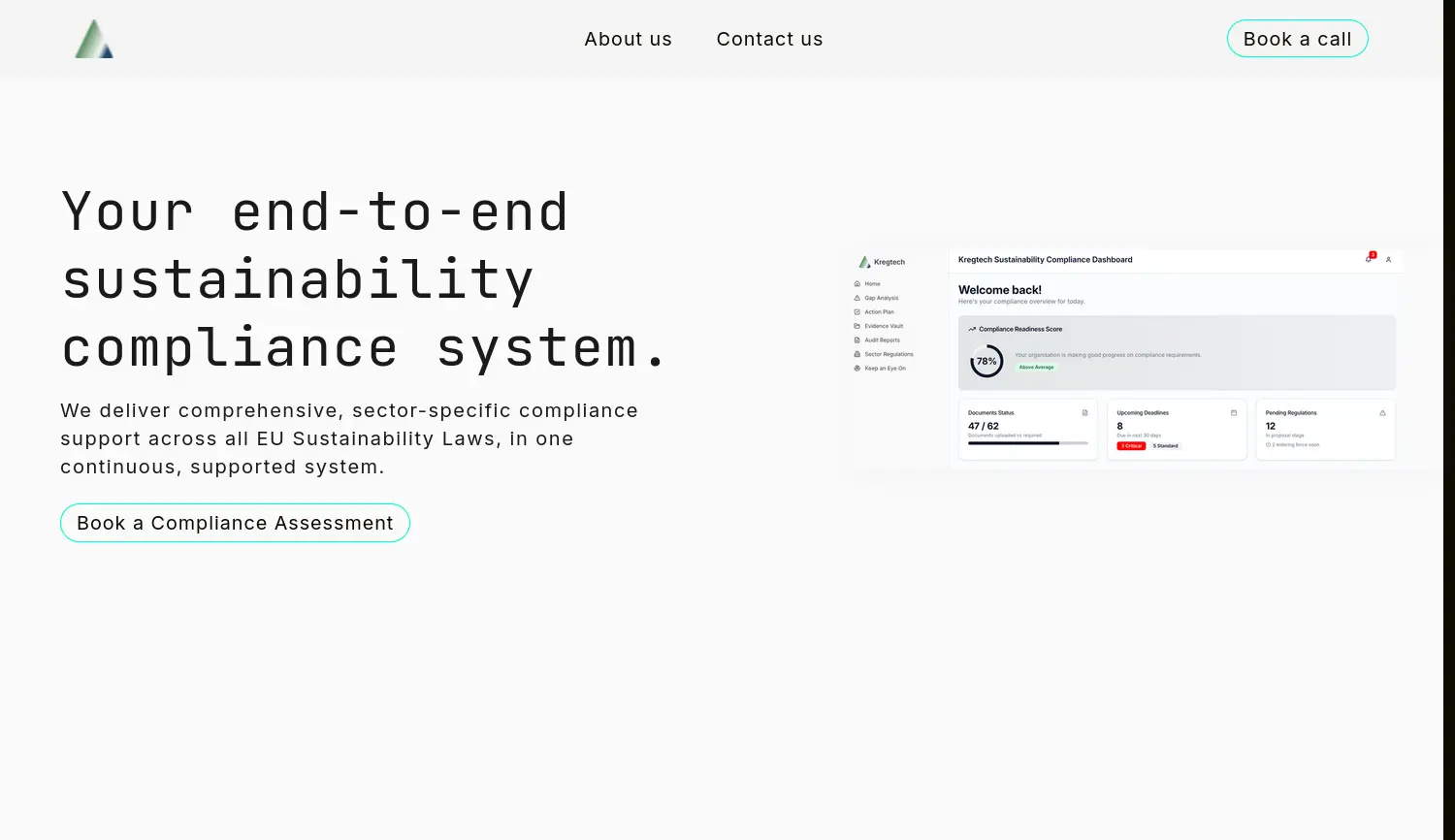 Lösungen für die Einhaltung von EU-Nachhaltigkeitsvorschriften Kregtech bietet eine digitale SaaS-Plattform zur automatisierten Analyse, Verwaltung und Überwachung der Einhaltung von EU-Nachhaltigkeitsvorschriften für Unternehmen.
