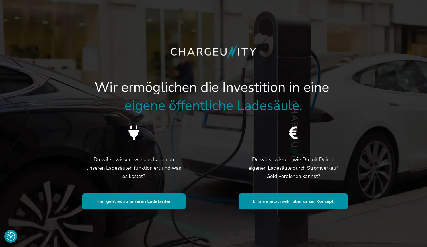 Öffentliche Ladepunkte. Für alle. CHARGEUNITY baut und betreibt öffentliche Ladeinfrastruktur für Elektrofahrzeuge und ermöglicht es Privatpersonen und Unternehmen, in eigene Ladesäulen zu investieren und damit zur Verkehrswende beizutragen.