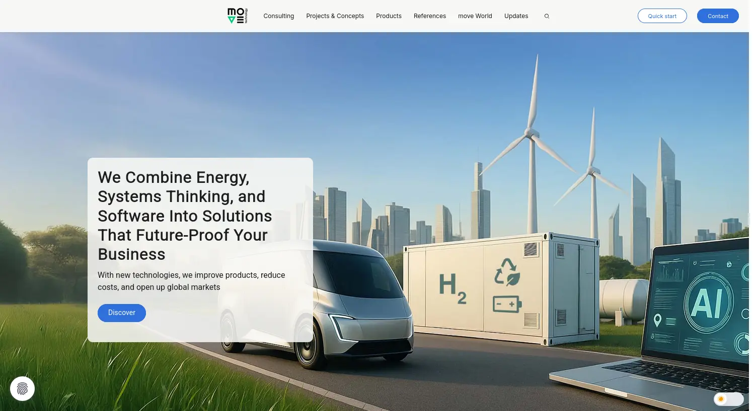 Die Zukunft gestalten mit grüner Energie und smarter KI move technology kombiniert Expertise in grüner Energie, Systemtechnik und Softwareentwicklung, um zukunftssichere Lösungen und Produkte anzubieten, insbesondere im Bereich Wasserstoff und KI.