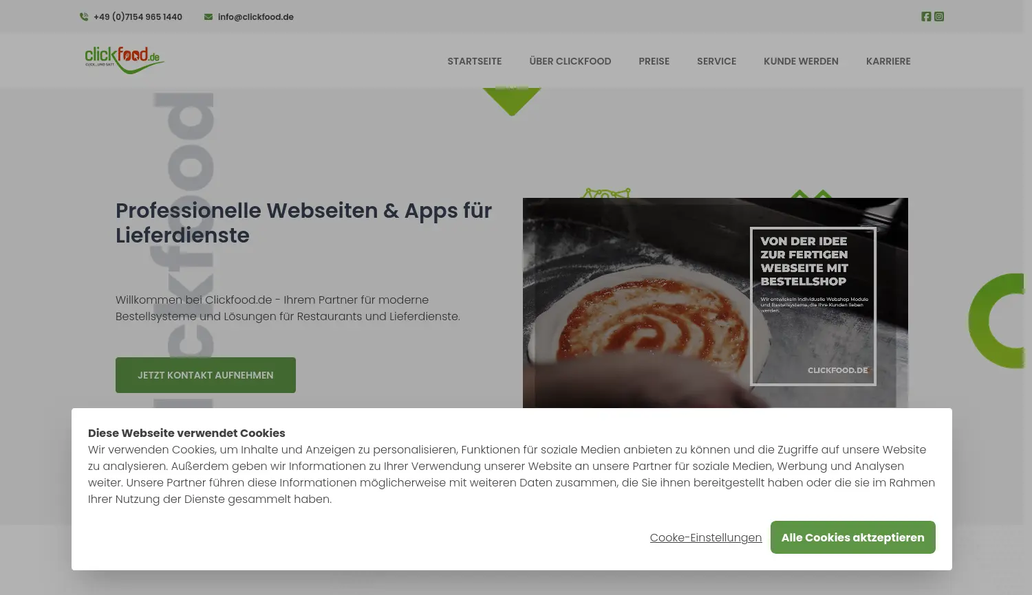 Professionelle Webseiten, Apps und Kassenlösungen für provisionsfreie Lieferdienste. Clickfood bietet provisionsfreie, eigenständige Bestellsysteme, professionelle Webseiten und Apps sowie Kassensystem-Schnittstellen für Lieferdienste und Restaurants.