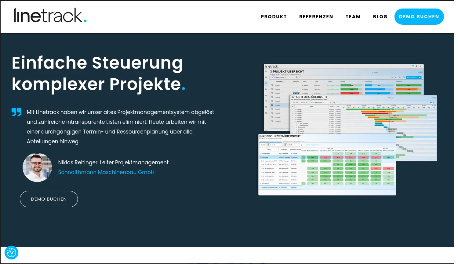Effizientes Projektmanagement im Wertschöpfungsnetzwerk Linetrack ist eine kollaborative Webplattform für effizientes Projekt-, Ressourcen- und Lieferantenmanagement in komplexen Industrieprojekten, insbesondere im Maschinen- und Anlagenbau.