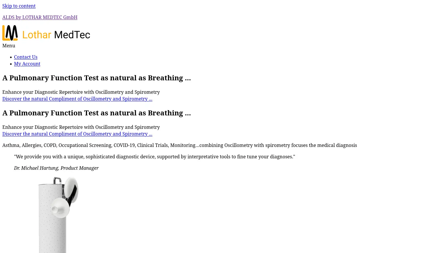 Ein Lungenfunktionstest so natürlich wie Atmen. ALDS ist ein ambulantes Diagnosesystem der LOTHAR MEDTEC GmbH, das Oszillometrie und Spirometrie kombiniert, um Atemwegserkrankungen präzise zu diagnostizieren und zu überwachen.