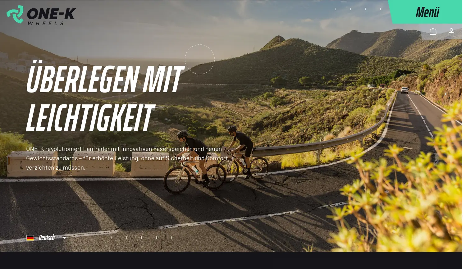 Überlegen mit Leichtigkeit ONE-K entwickelt und produziert ultraleichte Carbon-Laufräder für Rennräder und Gravelbikes, die innovative Faserspeichen für überlegene Leistung und geringes Gewicht nutzen.