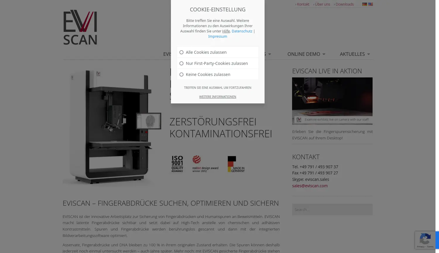 Berührungslose, zerstörungsfreie und kontaminationsfreie Fingerspurensicherung für die Forensik. EVISCAN ist ein innovativer Arbeitsplatz zur berührungslosen und zerstörungsfreien Sicherung, Optimierung und Konservierung latenter Fingerabdrücke auf Beweismitteln.
