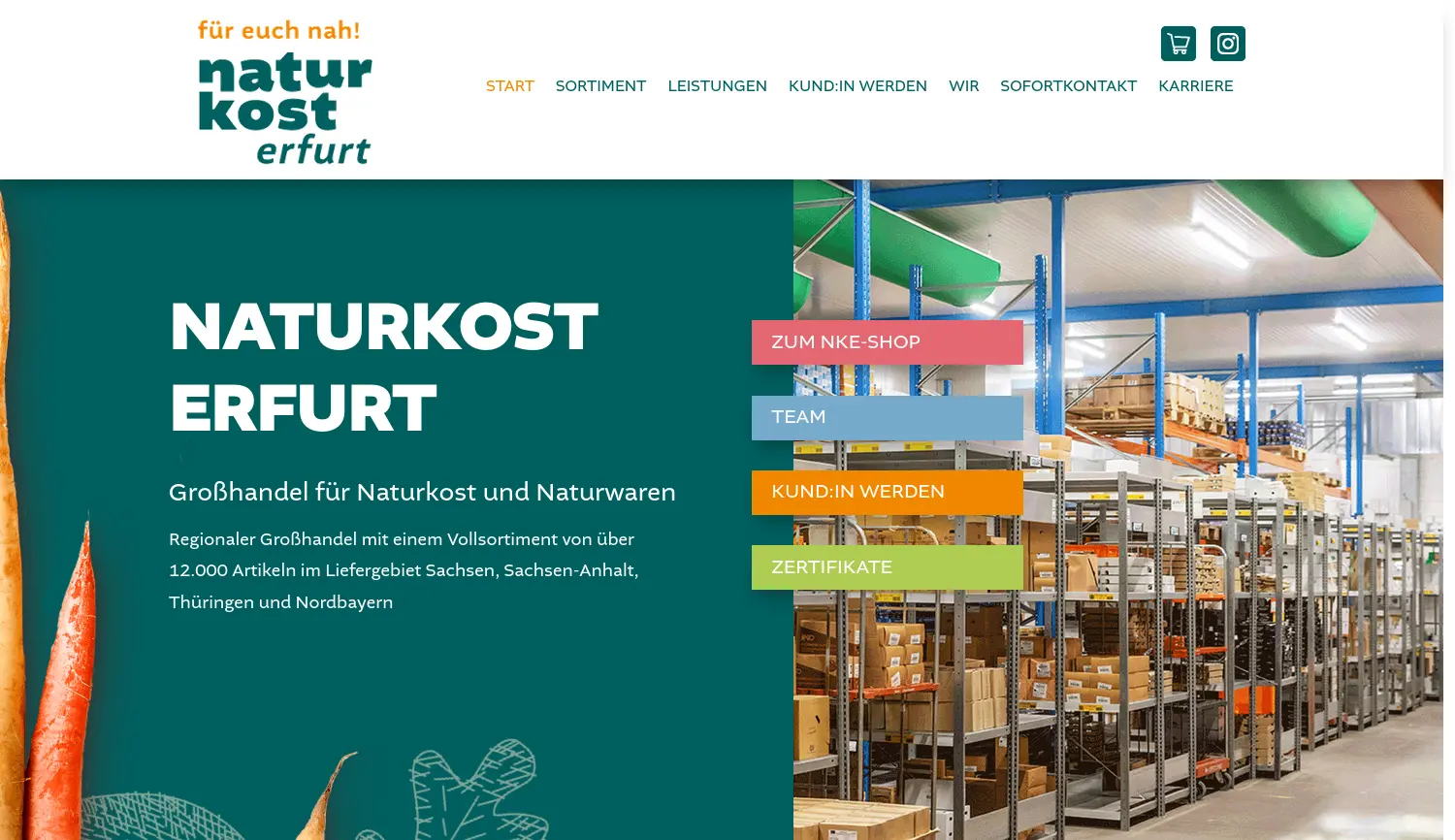 Großhandel für Naturkost und Naturwaren Naturkost Erfurt ist ein Bio-Vollsortimenter und Großhändler für Naturkost und Naturwaren, der den Handel und die Gastronomie in Mitteldeutschland und Nordbayern beliefert.