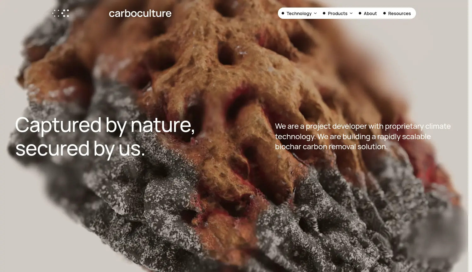 Kohlenstoff von der Natur aufgenommen, von uns gesichert. Carbo Culture nutzt patentierte Carbolysis™ Reaktoren, um Biomasseabfälle in Biochar umzuwandeln und so Kohlenstoff dauerhaft zu speichern und erneuerbare Energie zu erzeugen.