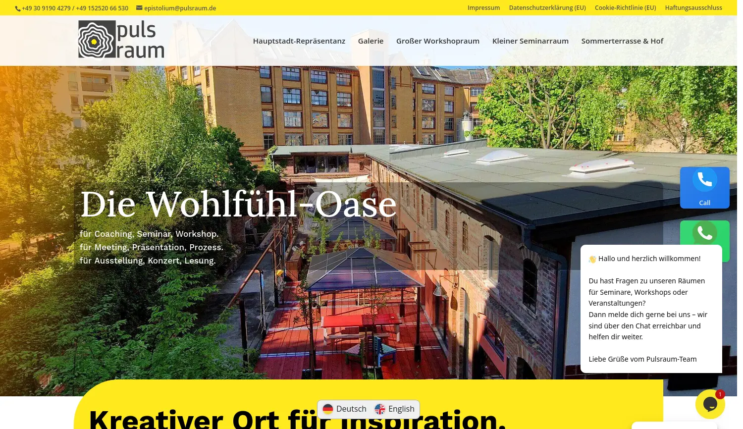 Die Wohlfühl-Oase für Coaching, Seminar, Workshop und Event in Berlin. Pulsraum ist ein Berliner Coworking Space und Kreativzentrum, das inspirierende Räume und Eventlocations für Unternehmen und NGOs anbietet.