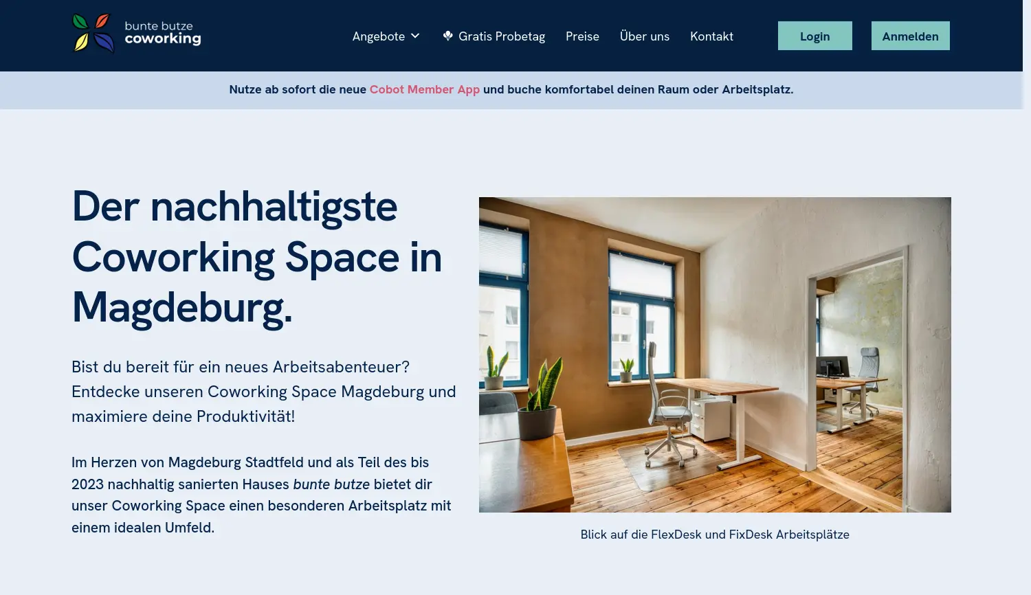 Der nachhaltigste Coworking Space in Magdeburg. Die bunte butze bietet einen nachhaltig sanierten Coworking Space in Magdeburg mit flexiblen und festen Arbeitsplätzen sowie Meeting- und Eventräumen.