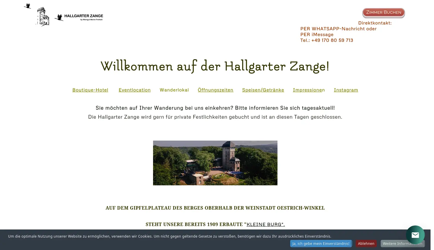 Exklusive Eventlocation, Boutique-Hotel und Wanderziel auf dem Gipfelplateau im Rheingau. Die Hallgarter Zange ist ein historischer Berggasthof im Rheingau, der als Boutique-Hotel, exklusive Eventlocation und Wanderlokal dient.