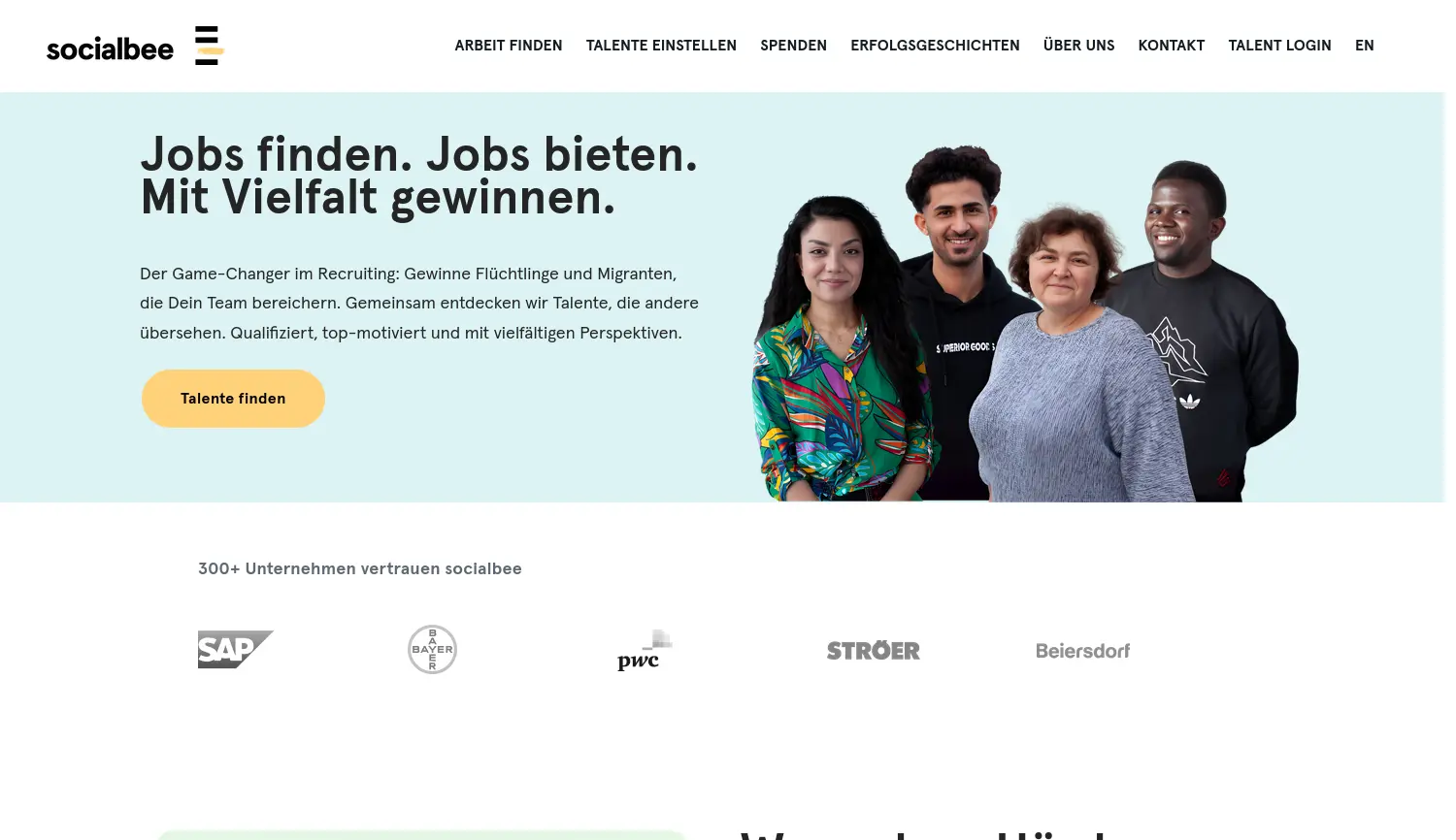 Der Game-Changer im Recruiting: Mit Vielfalt gewinnen. socialbee vermittelt qualifizierte Geflüchtete und Migranten in langfristige Jobs und unterstützt Unternehmen bei Recruiting und Integration.