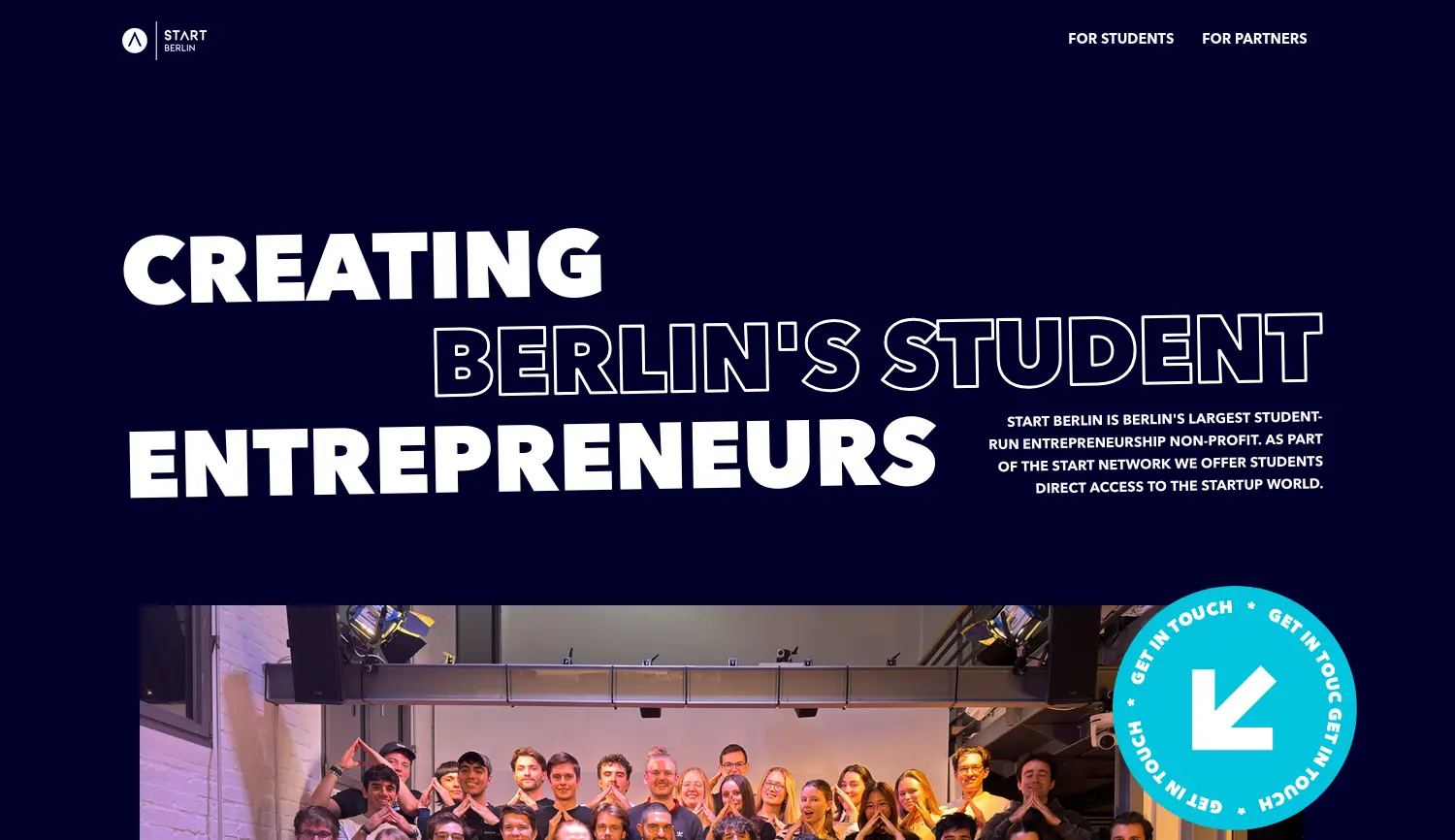 Das studentengeführte Gründungsnetzwerk für die nächste Generation von Innovatoren in Berlin. START Berlin ist die größte studentengeführte Non-Profit-Initiative in Berlin, die Studierende aktiv mit dem Startup-Ökosystem verbindet, um Unternehmertum und Innovation zu fördern.