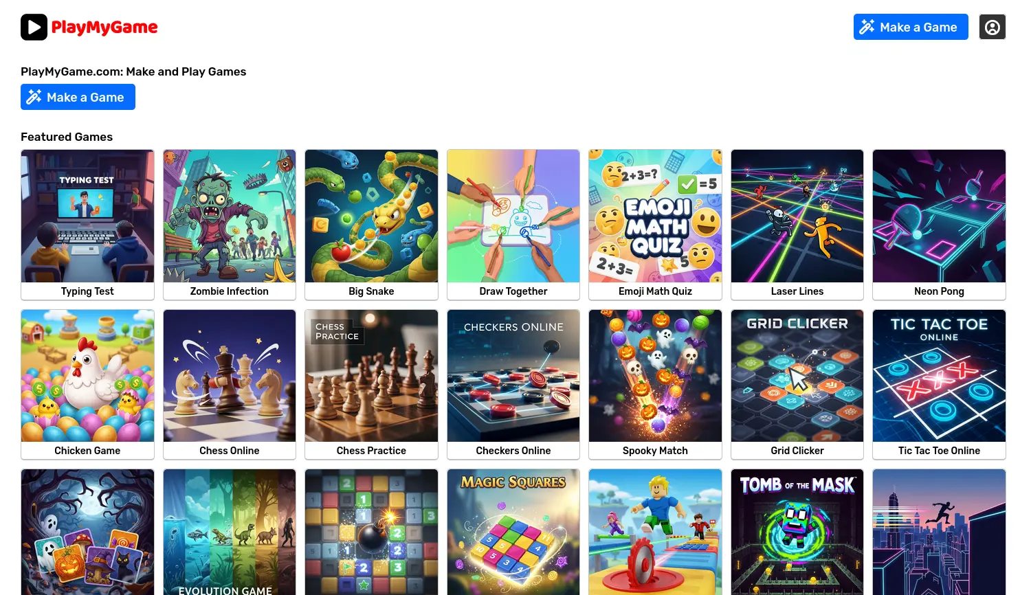 Kostenlose Online-Spiele spielen und selbst Spiele entwickeln. PlayMyGame ist eine Online-Plattform, die eine große Auswahl kostenloser Browserspiele sowie Tools zur Erstellung eigener Spiele anbietet.