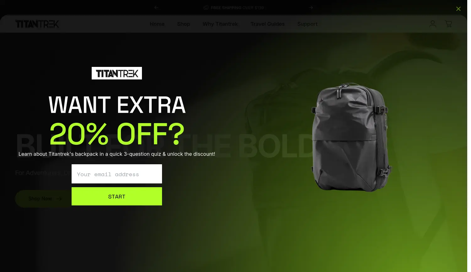 Hochinnovative Reiseausrüstung mit Vakuumkompression für maximale Packeffizienz. Titantrek verkauft innovative Reiseausrüstung, insbesondere Rucksäcke mit eingebauter Vakuumkompression zur Verdopplung der Packkapazität für Abenteuer und Reisen.