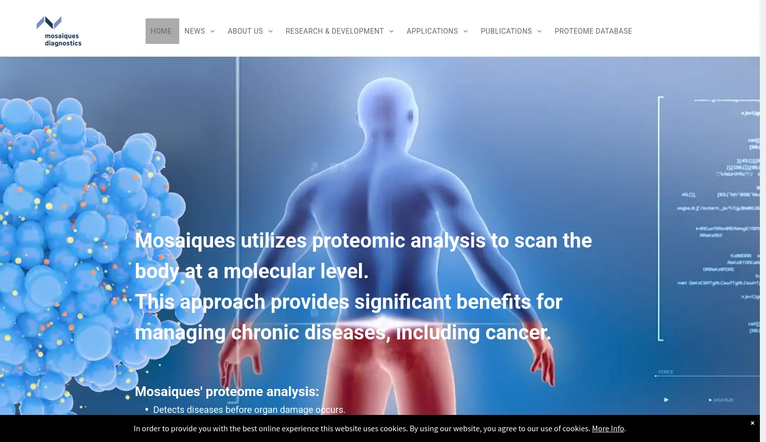 Molekulare Präzision für die Früherkennung und personalisierte Medizin. Mosaiques ist ein führendes Unternehmen in der klinischen Proteomanalyse zur Früherkennung und personalisierten Behandlung schwerer Krankheiten.