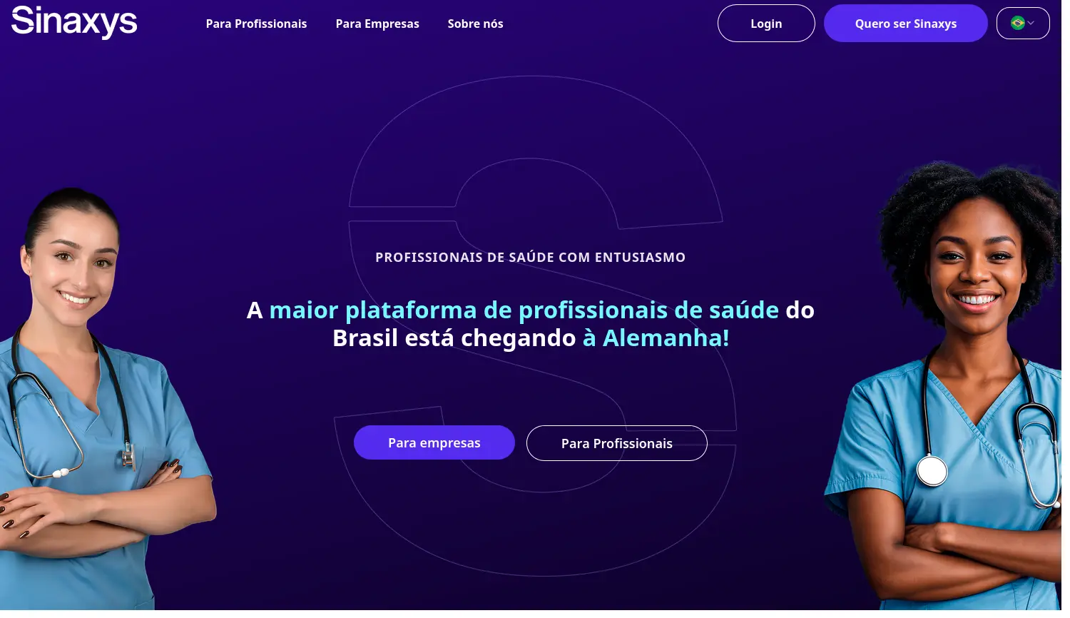 Die größte Plattform für Gesundheitsfachkräfte aus Brasilien für den deutschen Markt. Sinaxys ist eine Technologieplattform, die hochqualifizierte brasilianische Pflege- und Gesundheitsfachkräfte rekrutiert und in den deutschen Gesundheitsmarkt integriert.