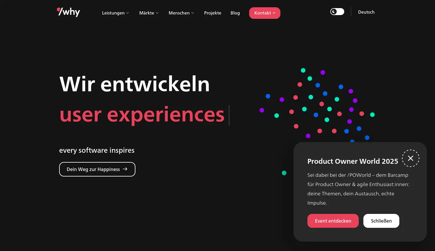 every software inspires slashwhy entwickelt individuelle Softwarelösungen und digitale Produkte mit außergewöhnlicher User Experience auf Basis zukunftsweisender Technologien.