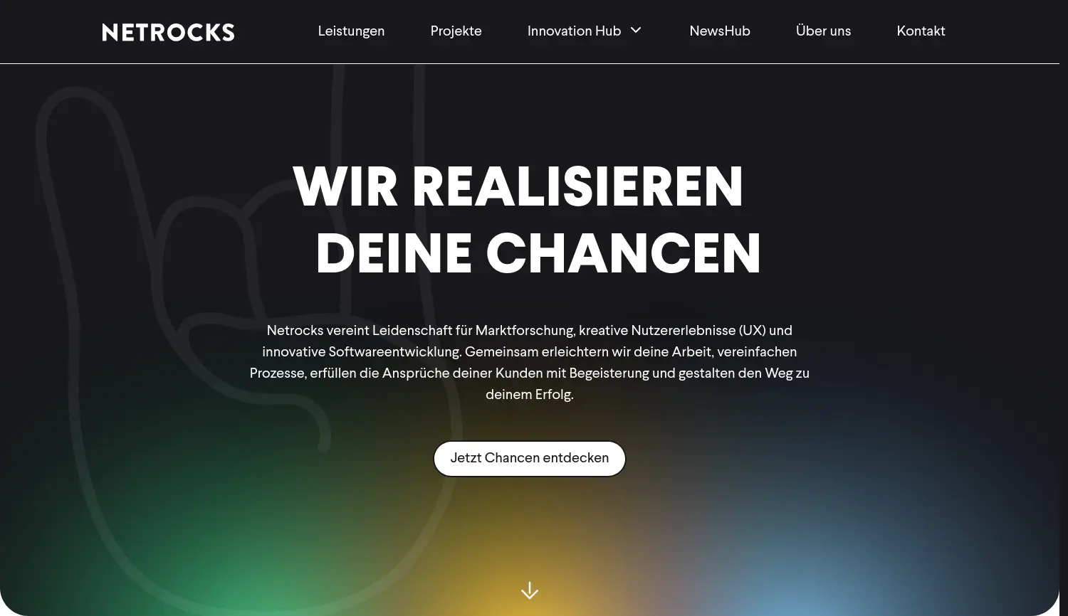 Wir realisieren deine Chancen durch Software und Innovation Netrocks entwickelt individuelle KI- und Software-Lösungen und fungiert als Innovation Hub, um Unternehmen bei der digitalen Transformation und der Neuentwicklung von Geschäftsmodellen zu unterstützen.