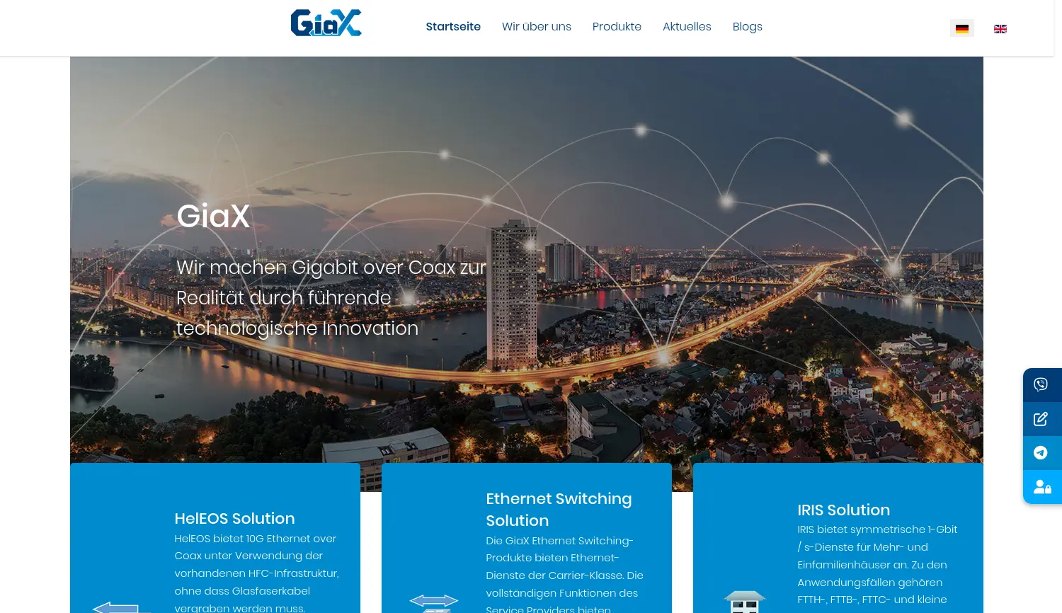 Wir machen Gigabit over Coax zur Realität durch führende technologische Innovation. GiaX entwickelt innovative Kommunikationslösungen, die Gigabit-Dienste über die bestehende Koaxialkabel-Infrastruktur für Service Provider ermöglichen.