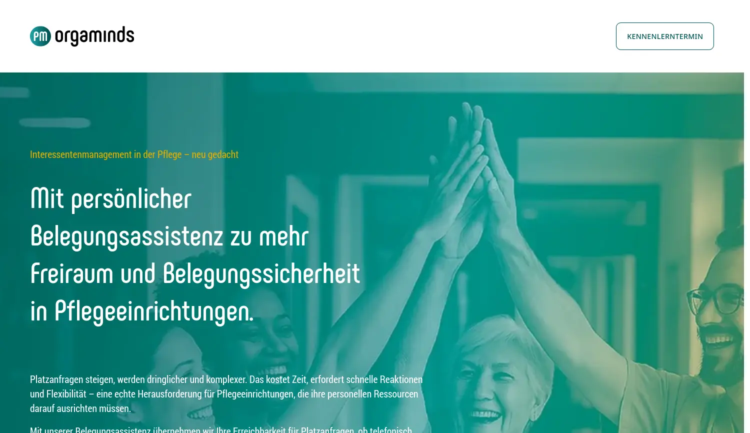 Mit persönlicher Belegungsassistenz zu mehr Freiraum und Belegungssicherheit in Pflegeeinrichtungen. P&M Orgaminds bietet Pflegeeinrichtungen eine persönliche Belegungsassistenz zur Professionalisierung des Interessentenmanagements und zur Sicherstellung der Auslastung.