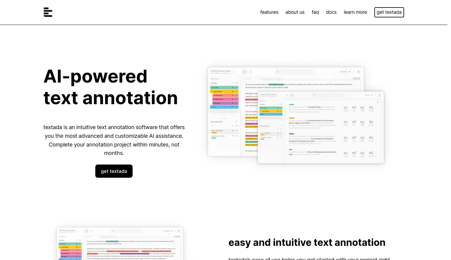 KI-gestützte Text-Annotationssoftware für mühelose Inhaltsanalyse. textada ist eine intuitive, KI-gestützte Text-Annotationssoftware, die Benutzern die schnelle und effiziente Analyse großer Textdatenmengen ermöglicht.