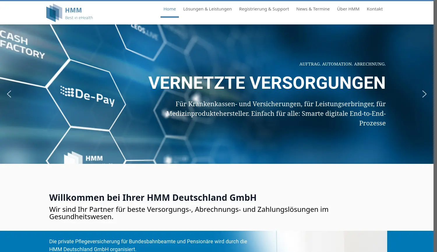 Innovative Versorgungs- und Abrechnungslösungen für das Gesundheitswesen. HMM Deutschland bietet innovative SaaS-Plattformen und digitale Lösungen für die automatisierte Versorgungs-, Abrechnungs- und Zahlungsabwicklung im deutschen Gesundheitswesen.