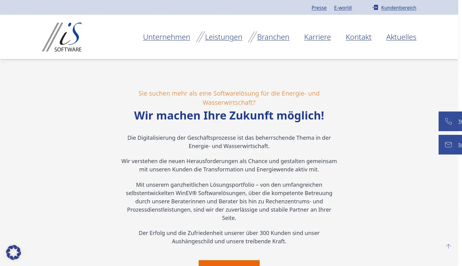 Komplettlösungen für die Energiewirtschaft – Wir machen Ihre Zukunft möglich! iS Software bietet ganzheitliche Softwarelösungen und Dienstleistungen, primär die WinEV® Software, für die Digitalisierung von Geschäftsprozessen in der Energie- und Wasserwirtschaft an.