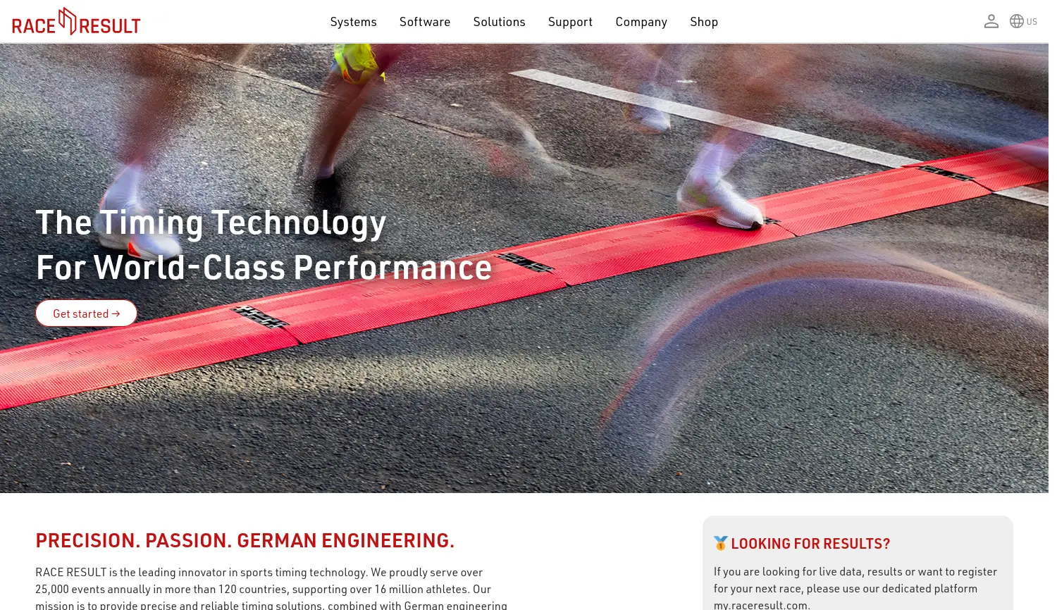 Präzision. Leidenschaft. Deutsche Ingenieurskunst für Sport-Zeitmessung. RACE RESULT ist der führende Anbieter von präzisen Zeitmessungstechnologien und Softwarelösungen für Sportveranstaltungen weltweit, gestützt auf deutsche Ingenieurskunst.