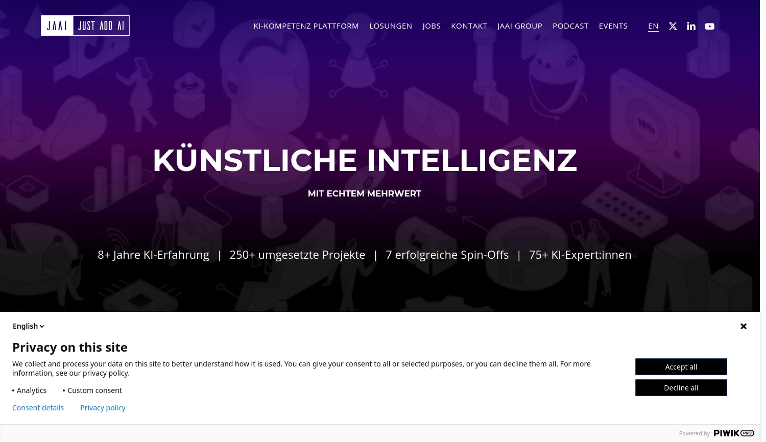 Künstliche Intelligenz mit echtem Mehrwert JUST ADD AI entwickelt und implementiert maßgeschneiderte, sichere KI-Lösungen sowie Standardprodukte für Unternehmen, um messbaren Mehrwert zu schaffen.