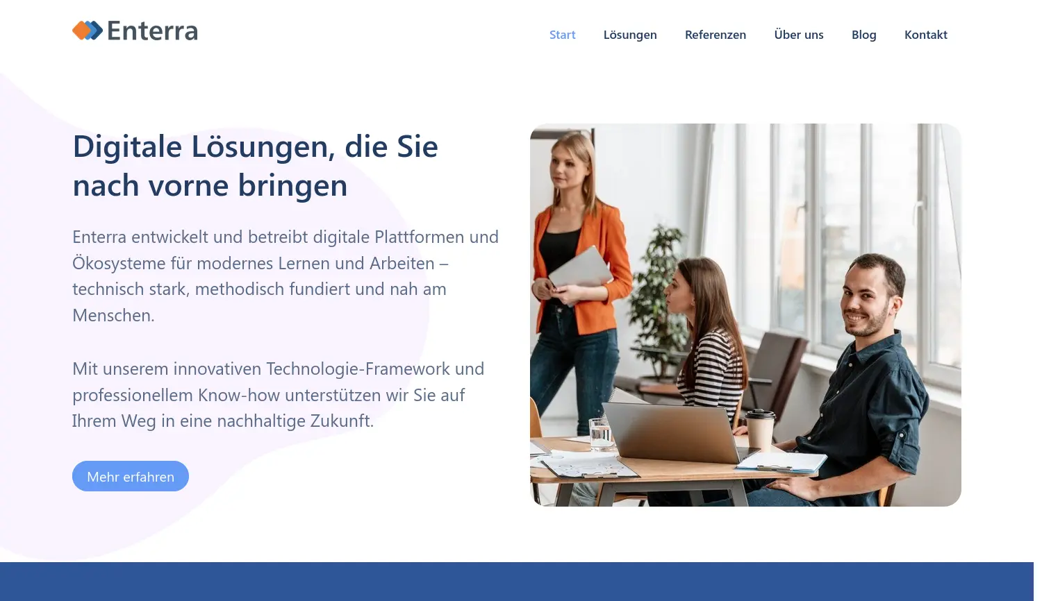 Digitale Lösungen, die Sie nach vorne bringen Enterra entwickelt und betreibt digitale Plattformen und Ökosysteme für modernes Lernen und Arbeiten in Unternehmen, darunter die Digital, Learning und Competence Suite.