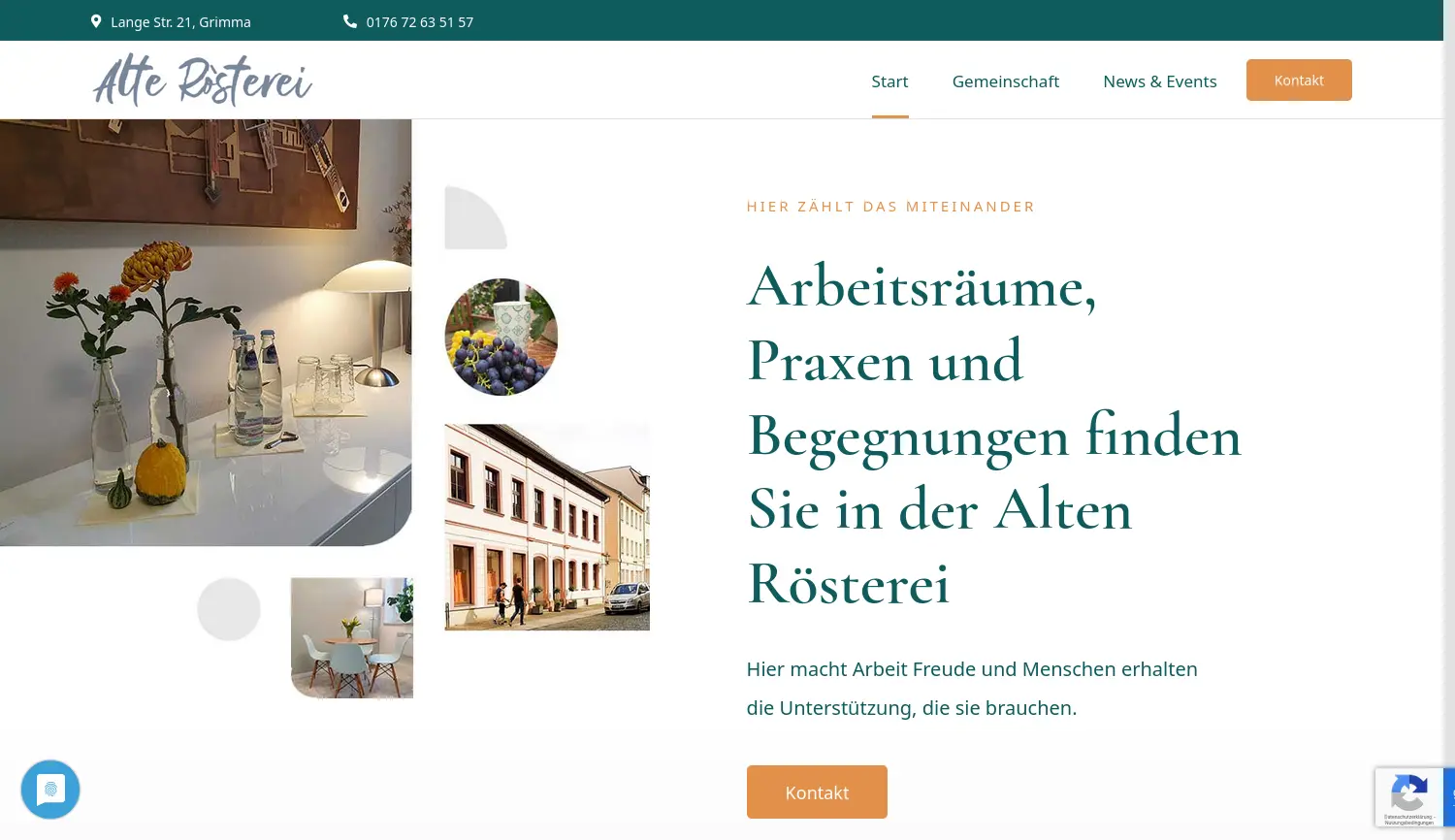 Arbeitsräume, Praxen und Begegnungen finden Sie in der Alten Rösterei. Die Alte Rösterei in Grimma bietet flexible Büros, Praxis- und Seminarräume in einem historischen Altbau mit Fokus auf Gemeinschaft.
