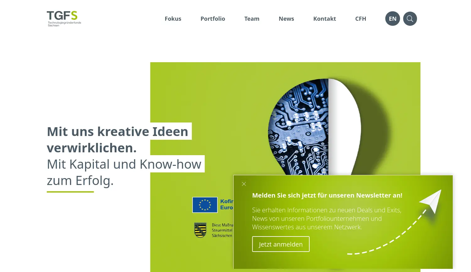 Mit Kapital und Know-how zum Erfolg für technologieorientierte Start-ups in Sachsen. Der TGFS ist ein führender Venture Capital Fonds, der technologieorientierte Start-ups in Sachsen mit Kapital und Know-how finanziert.