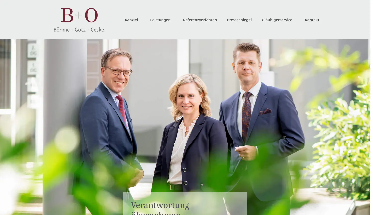 Führende Kanzlei für Insolvenzverwaltung, die Unternehmen erhält und Gläubiger befriedigt. B+O Böhme Götz Geske ist eine führende Kanzlei, spezialisiert auf Insolvenz-, Zwangs- und Wirtschaftsverwaltung mit Fokus auf Unternehmenssanierung und Gläubigerbefriedigung.