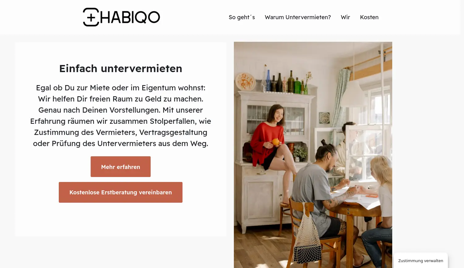 Mit uns gelingt das Untervermieten. Habiqo bietet umfassende Unterstützung für Wohnungsgebende, die freien Wohnraum einfach, sicher und rechtlich abgesichert untervermieten möchten.