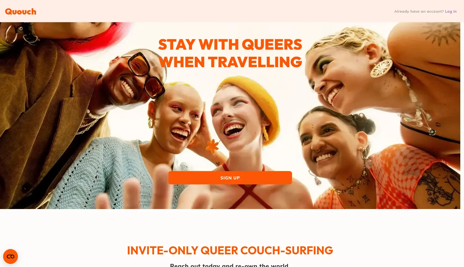 Invite-only queer Couch-Surfing – Finde deine Leute und entdecke die Welt sicher. Quouch ist eine exklusive, nur auf Einladung zugängliche mobile App für sicheres Couch-Surfing und soziales Networking innerhalb der queeren Community.