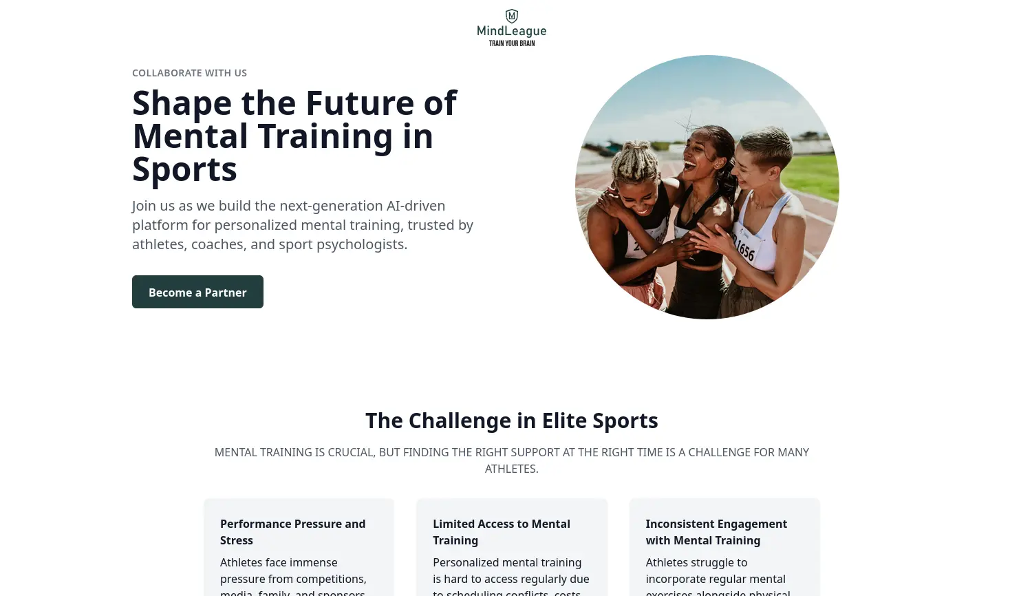 Shape the Future of Mental Training in Sports – Die KI-gesteuerte Plattform für personalisiertes mentales Training. MindLeague ist eine KI-gesteuerte Plattform, die personalisiertes mentales Training für Profisportler, Trainer und Sportpsychologen bereitstellt, um die Leistung zu steigern.