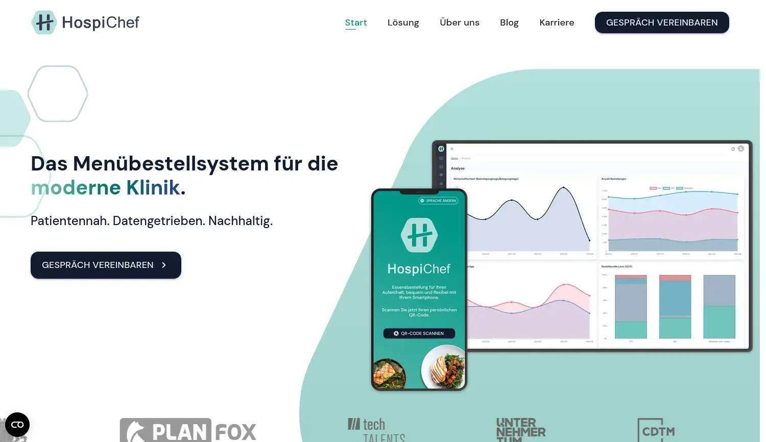 Das Menübestellsystem für die moderne Klinik. Patientennah. Datengetrieben. Nachhaltig. HospiChef bietet Kliniken ein datengetriebenes Menübestellsystem, das Speisenverwurf reduziert, Mitarbeiter entlastet und die Patientenzufriedenheit steigert.
