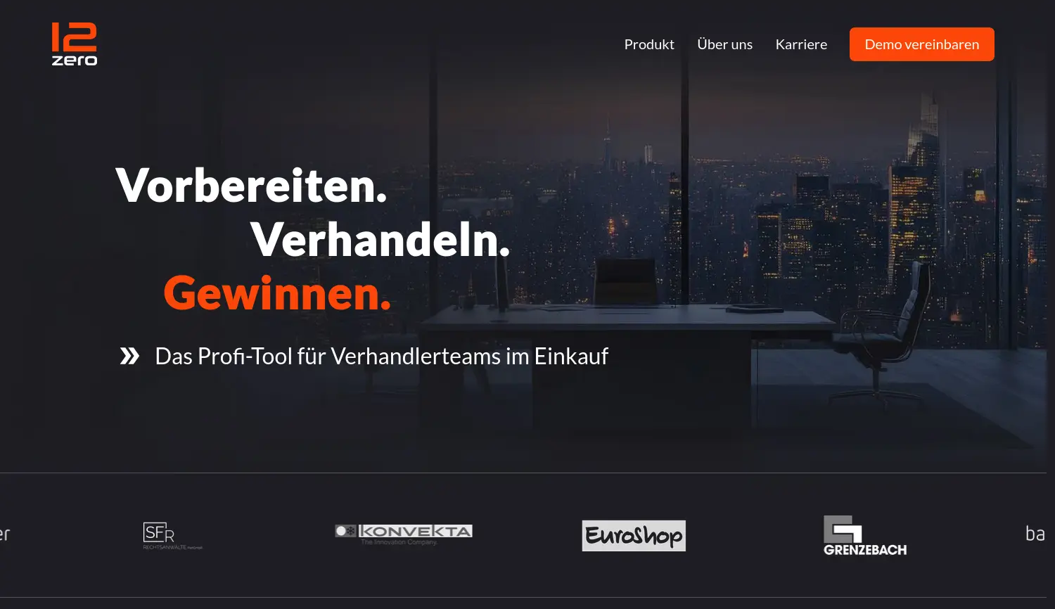 Vorbereiten. Verhandeln. Gewinnen. 12zero ist ein professionelles Software-Tool, das Verhandlungsteams in Vertrieb und Einkauf mithilfe von Analytik und psychologischen Strategien auf härtere Verhandlungen vorbereitet.