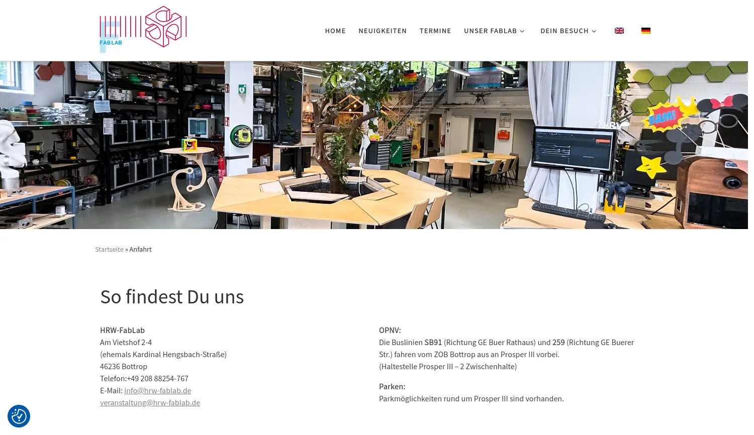 Offene Werkstatt und Kompetenzzentrum für digitale Fertigung an der Hochschule Ruhr West. Das HRW FabLab ist eine offene Hightech-Werkstatt der Hochschule Ruhr West in Bottrop, die Zugang zu digitalen Fertigungstechnologien wie 3D-Druck bietet.