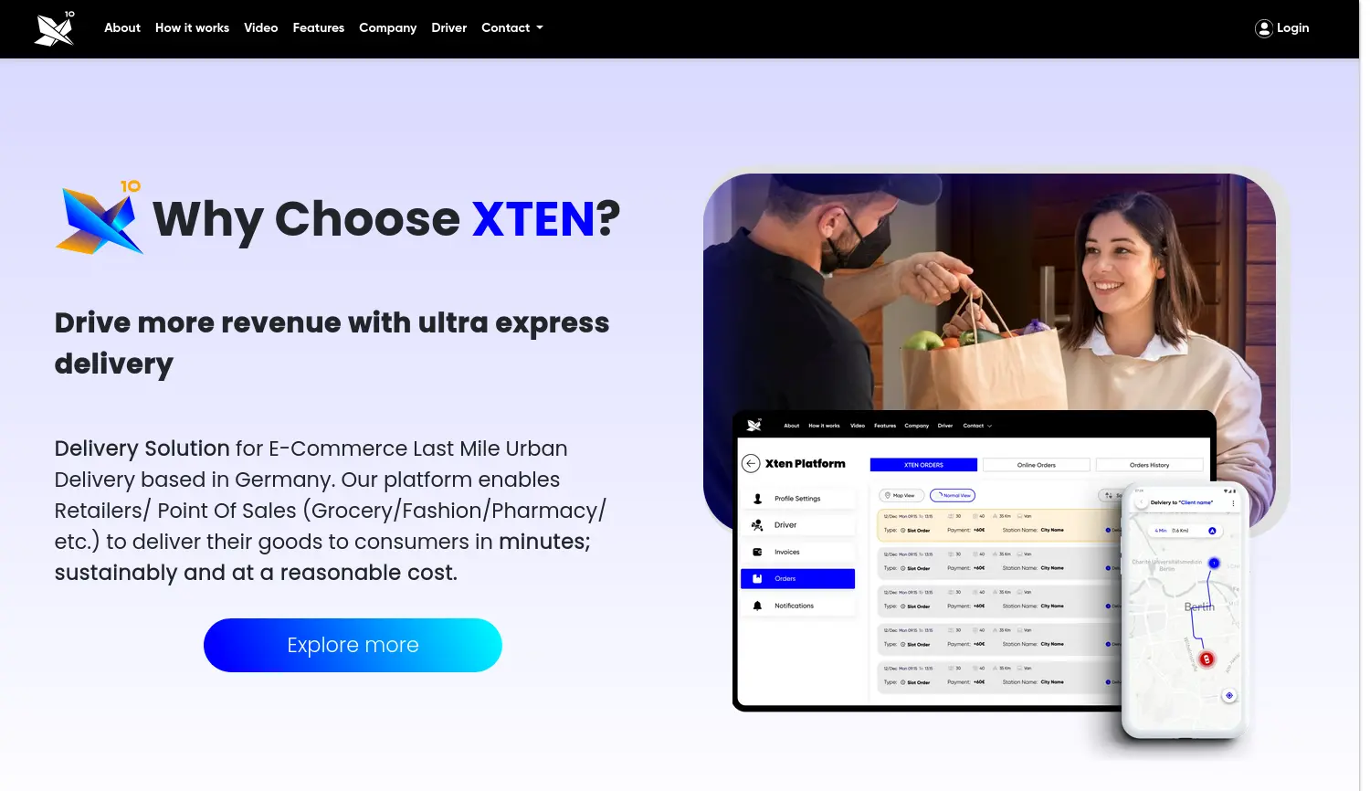 Ultra-Express-Lieferung für den urbanen E-Commerce. Xten bietet eine Ultra-Express-Lösung für die letzte Meile im E-Commerce und liefert Waren in Minuten nachhaltig an Kunden.