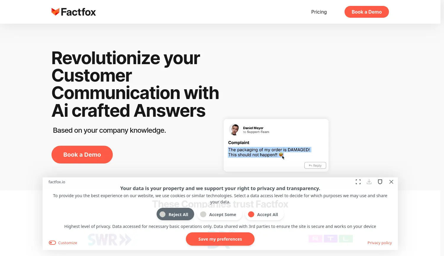 Revolutionäre KI-Antworten für optimierte Kundenkommunikation und interne Effizienz. FactFox bietet eine KI-gestützte Lösung, die schnelle, präzise und unternehmensspezifische Antworten für optimierten Kundensupport und effizientes Onboarding liefert.
