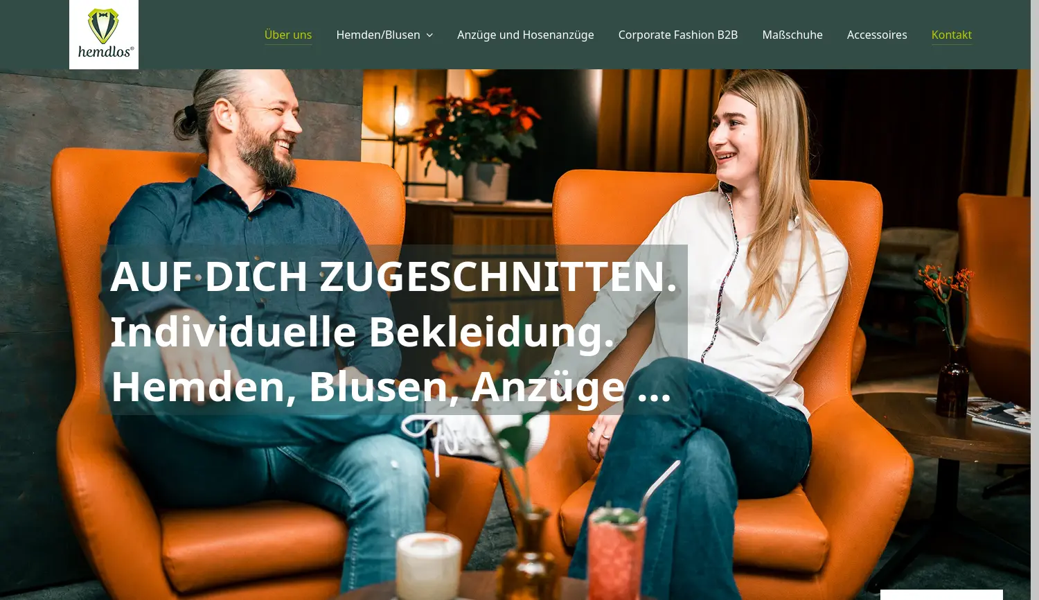 Individuelle Bekleidung. Auf dich zugeschnitten. hemdlos erstellt individuelle und maßgeschneiderte Bekleidung wie Hemden, Blusen und Anzüge mithilfe eines konfigurierbaren Baukastensystems und persönlicher Beratung.